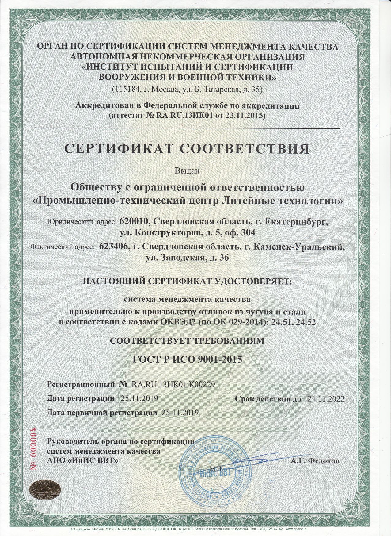 Оба предприятия успешно прошли аудит органа по сертификации систем менеджмента качества АНО "ИНиС ВиВТ" и получили сертификаты соответствия требованиям ГОСТ Р ИСО 9001-2015.