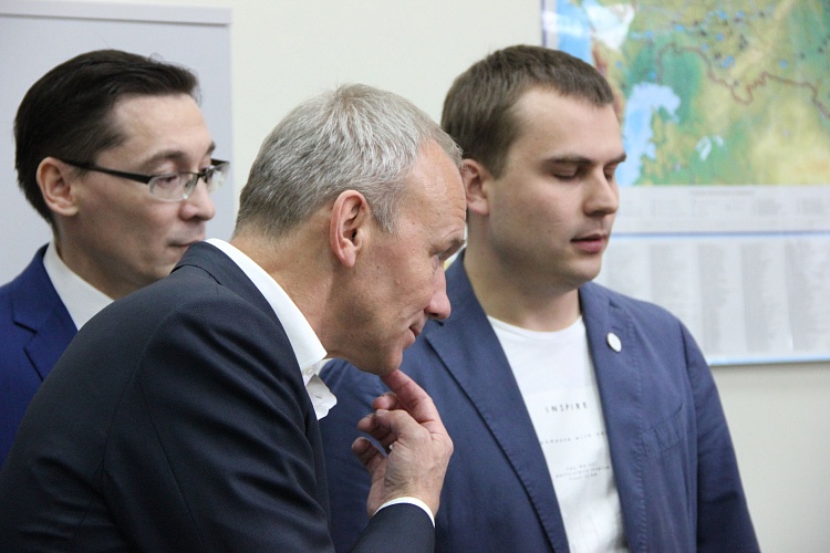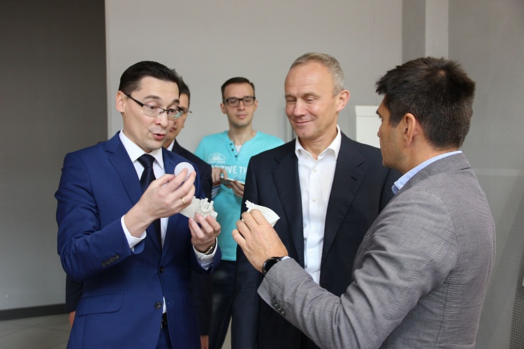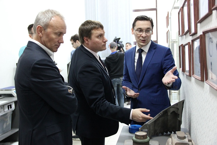 В этот раз рабочая группа по проекту собралась в технопарке высоких технологий. И прежде чем начать заседание, Олег Чемезов подробно ознакомился с деятельностью технопарка и его резидентами: генеральный директор технопарка Марат Нуриев продемонстрировал лабораторные и производственные помещения компаний «БиоМикроГели», Конструкторского бюро «Аэростарт», Постэкс, АгротехФарм, Техновизор, MLabs, Эникон, а также Инжинирингового Центра самого технопарка.