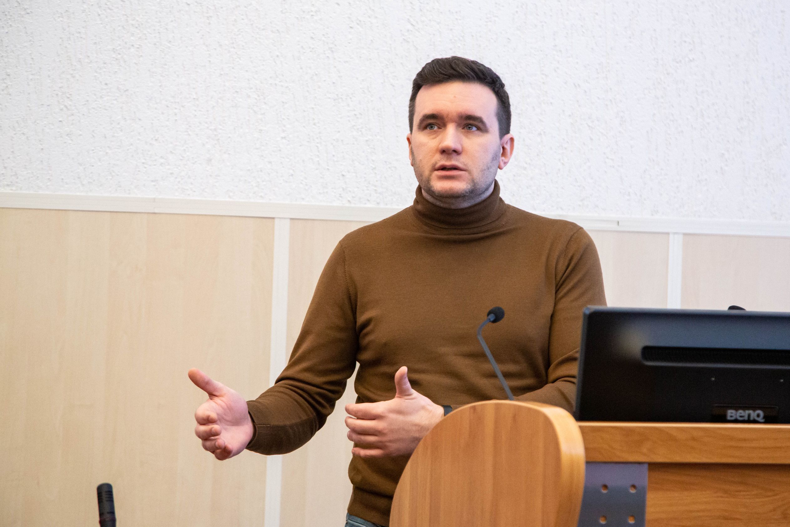 В УрГЭУ состоялась открытая лекция первого заместителя генерального директора Технопарка высокихтехнологий Свердловской области Виталия Баланчука. В своем выступлении спикер осветил тему высоких технологий в регионе, с какими проблемами и трудностями сталкиваются инновационные стартапы и как технопарк может помочь их решить.
