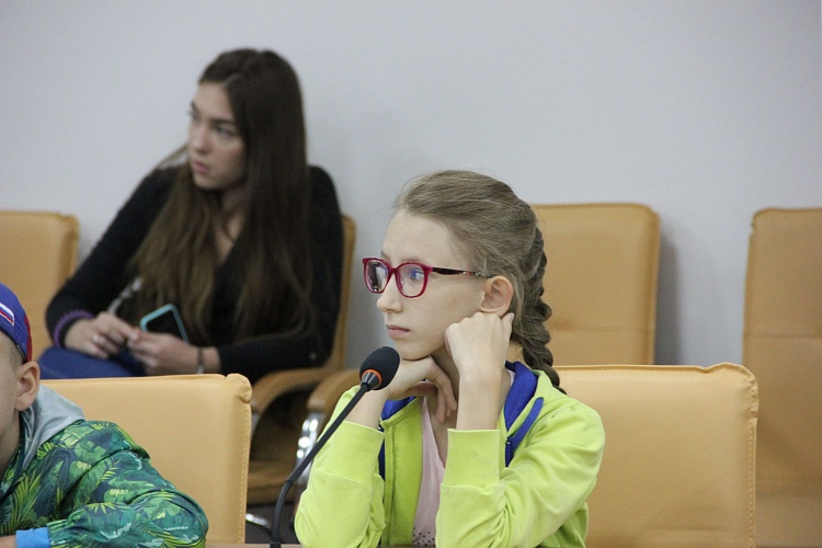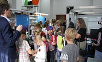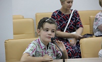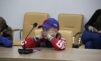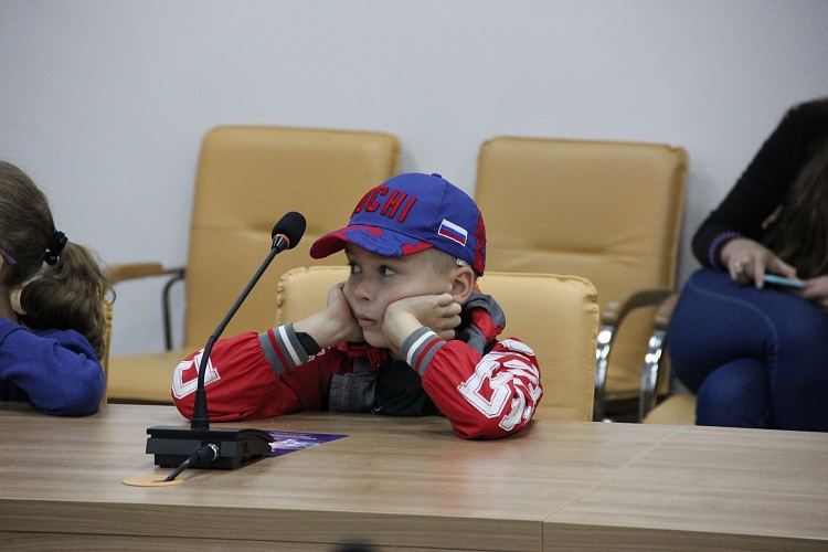 Ну а затем, собственно, и началась экскурсия. Маленькие гости с удовольствием посидели в креслах президиума на сцене конференц-зала (там где несколько дней назад заседали областные министры и представители одного из крупнейших холдингов страны), прошлись по холлам, где обычно проводятся состязания по 3D- моделированию и кипит проектная работа в группах.