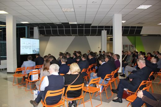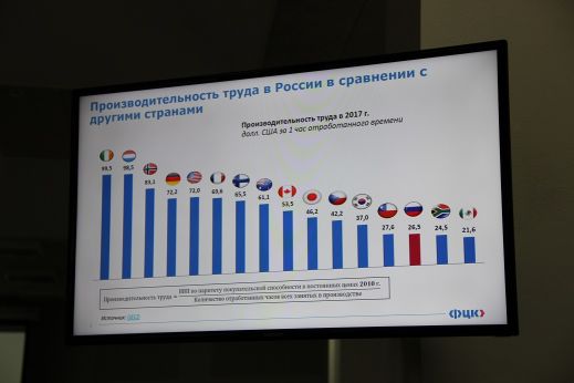 В зале был аншлаг и всем желающим просто не хватило места, поэтому жаждущие приобщиться к внедряемым новшествам и услышать подробности о полученных первых результатах, об особенностях реализации федерального проекта Адресная поддержка повышения производительности труда на предприятиях, модели развития персонала, заняли позицию в холле с он-лайн трансляцией происходящего в основном зале.
